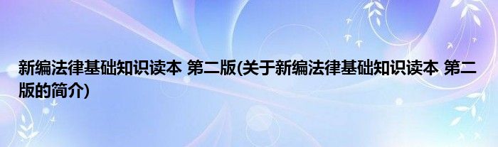 本文关于新编法律基础知识读本 第二版的简介就讲解完毕,希望对大家有所帮助。