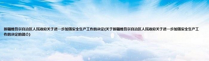 大家好,新疆维吾尔自治区人民政府关于进一步加强安全生产工作的决定,关于新疆维吾尔自治区人民政府关于进一步加强安全生产工作的决定的简介很多人还不知道,现在让我们一起来看看吧!