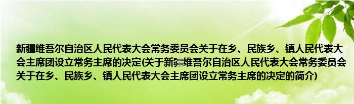 新疆维吾尔自治区人民代表大会常务委员会关于在乡、民族乡、镇人民代表大会主席团设立常务主席的决定(关于新疆维吾尔自治区人民代表大会常务委员会关于在乡、民族乡、镇人民代表大会主席团设立常务主席的决定的简介)