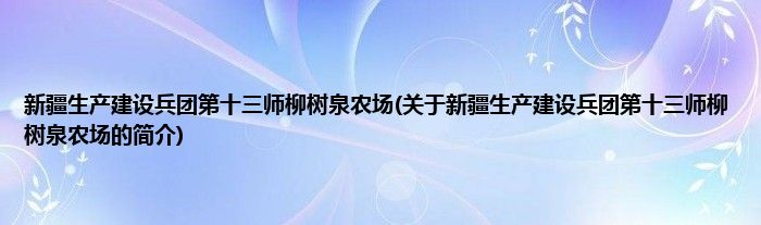 本文关于新疆生产建设兵团第十三师柳树泉农场的简介就讲解完毕,希望对大家有所帮助。