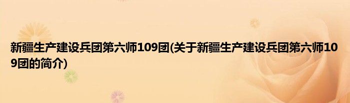 大家好,新疆生产建设兵团第六师109团,关于新疆生产建设兵团第六师109团的简介很多人还不知道,现在让我们一起来看看吧!