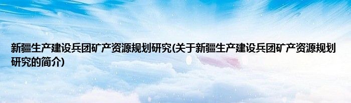 新疆生产建设兵团矿产资源规划研究(关于新疆生产建设兵团矿产资源规划研究的简介)