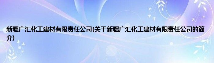 本文关于新疆广汇化工建材有限责任公司的简介就讲解完毕,希望对大家有所帮助。
