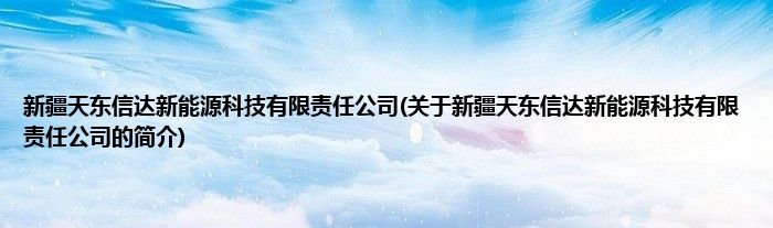 本文关于新疆天东信达新能源科技有限责任公司的简介就讲解完毕,希望对大家有所帮助。