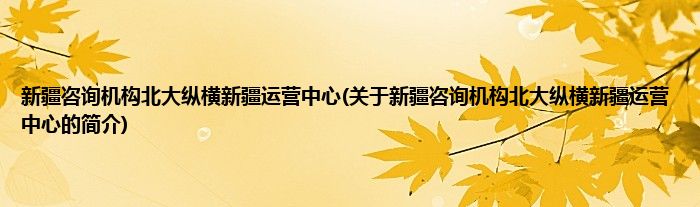 大家好,新疆咨询机构北大纵横新疆运营中心,关于新疆咨询机构北大纵横新疆运营中心的简介很多人还不知道,现在让我们一起来看看吧!