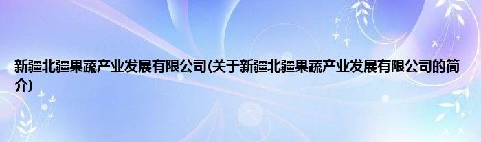 新疆北疆果蔬产业发展有限公司(关于新疆北疆果蔬产业发展有限公司的简介)
