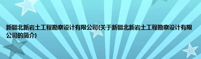 新疆北新岩土工程勘察设计有限公司(关于新疆北新岩土工程勘察设计有限公司的简介)