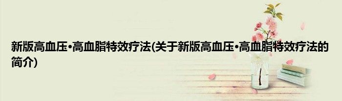本文关于新版高血压·高血脂特效疗法的简介就讲解完毕,希望对大家有所帮助。