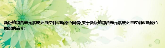 本文关于新版植物营养元素缺乏与过剩诊断原色图谱的简介就讲解完毕,希望对大家有所帮助。