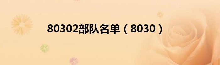 大家好,小问来为大家解答以上问题。80302部队名单,8030这个很多人还不知道,现在让我们一起来看看吧!