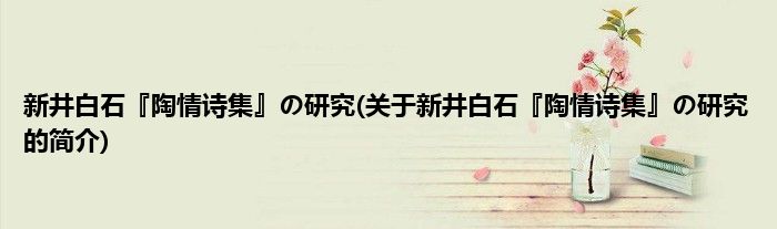 新井白石『陶情诗集』の研究(关于新井白石『陶情诗集』の研究的简介)