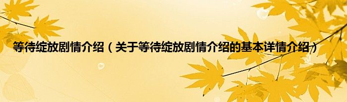 本文关于等待绽放剧情介绍的基本详情介绍就讲解完毕,希望对大家有所帮助。