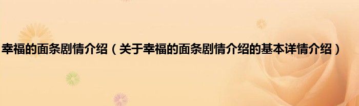 幸福的面条剧情介绍(关于幸福的面条剧情介绍的基本详情介绍)