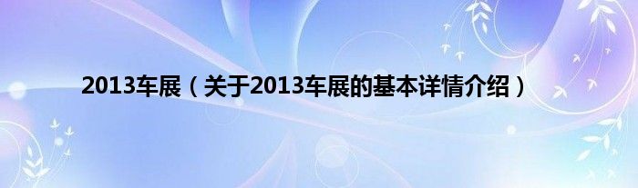 2013车展(关于2013车展的基本详情介绍)