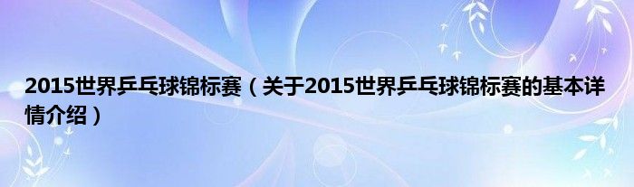 本文关于2015世界乒乓球锦标赛的基本详情介绍就讲解完毕,希望对大家有所帮助。