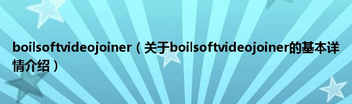 本文关于boilsoftvideojoiner的基本详情介绍就讲解完毕,希望对大家有所帮助。