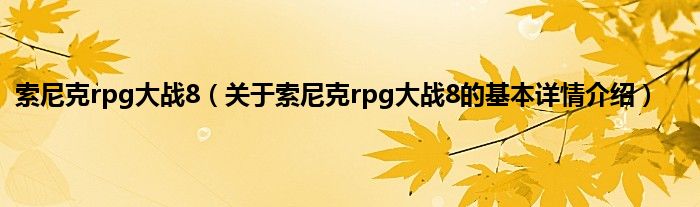 本文关于索尼克rpg大战8的基本详情介绍就讲解完毕,希望对大家有所帮助。