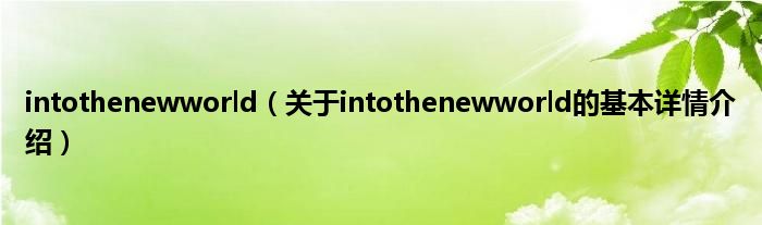 本文关于intothenewworld的基本详情介绍就讲解完毕,希望对大家有所帮助。