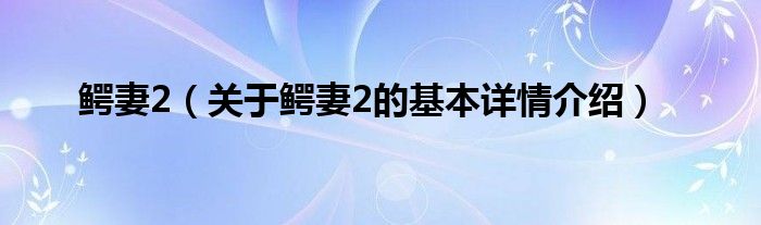 本文关于鳄妻2的基本详情介绍就讲解完毕,希望对大家有所帮助。