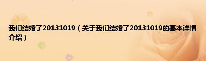 本文关于我们结婚了20131019的基本详情介绍就讲解完毕,希望对大家有所帮助。
