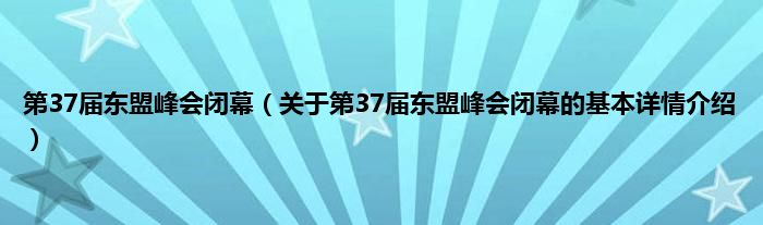 第37届东盟峰会闭幕(关于第37届东盟峰会闭幕的基本详情介绍)