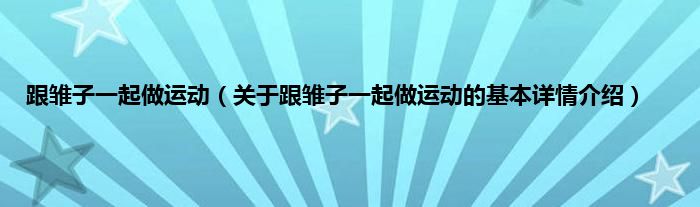 大家好我是小蝌蚪,跟雏子一起做运动,关于跟雏子一起做运动的基本详情介绍很多人还不知道,那么现在让我们一起来看看吧!