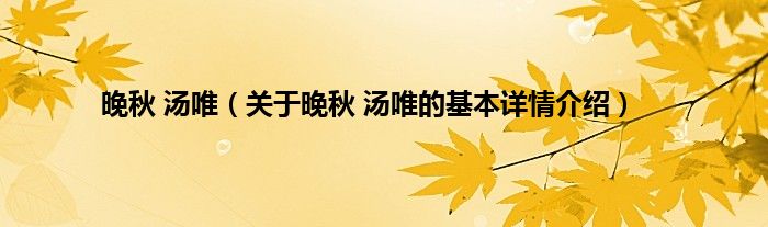 本文关于晚秋 汤唯的基本详情介绍就讲解完毕,希望对大家有所帮助。