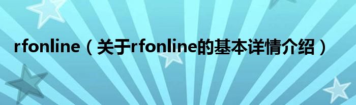 本文关于rfonline的基本详情介绍就讲解完毕,希望对大家有所帮助。