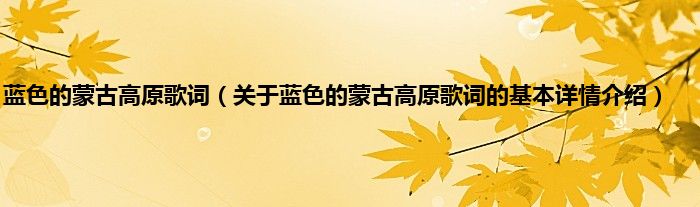 本文关于蓝色的蒙古高原歌词的基本详情介绍就讲解完毕,希望对大家有所帮助。