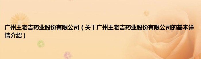 本文关于广州王老吉药业股份有限公司的基本详情介绍就讲解完毕,希望对大家有所帮助。