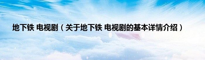 地下铁 电视剧(关于地下铁 电视剧的基本详情介绍)