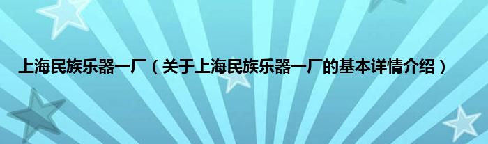 本文关于上海民族乐器一厂的基本详情介绍就讲解完毕,希望对大家有所帮助。
