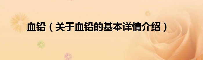 本文关于血铅的基本详情介绍就讲解完毕,希望对大家有所帮助。