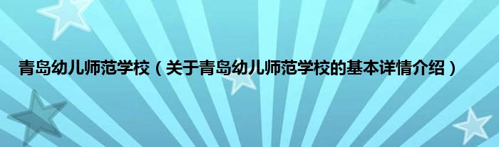 本文关于青岛幼儿师范学校的基本详情介绍就讲解完毕,希望对大家有所帮助。