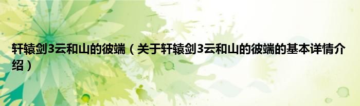 本文关于轩辕剑3云和山的彼端的基本详情介绍就讲解完毕,希望对大家有所帮助。