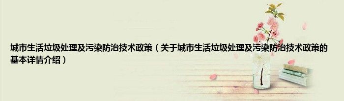 城市生活垃圾处理及污染防治技术政策(关于城市生活垃圾处理及污染防治技术政策的基本详情介绍)