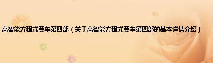 本文关于高智能方程式赛车第四部的基本详情介绍就讲解完毕,希望对大家有所帮助。