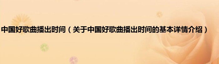 本文关于中国好歌曲播出时间的基本详情介绍就讲解完毕,希望对大家有所帮助。