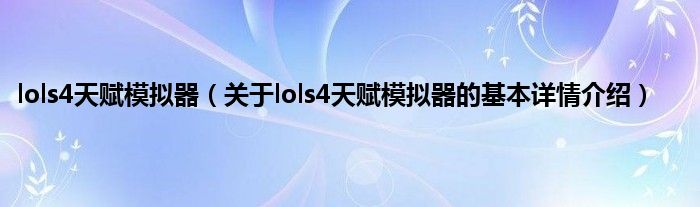 本文关于lols4天赋模拟器的基本详情介绍就讲解完毕,希望对大家有所帮助。