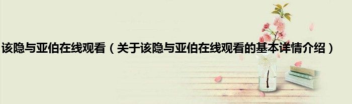 本文关于该隐与亚伯在线观看的基本详情介绍就讲解完毕,希望对大家有所帮助。
