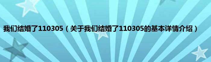 本文关于我们结婚了110305的基本详情介绍就讲解完毕,希望对大家有所帮助。