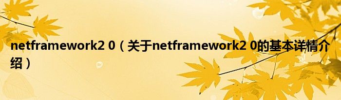 本文关于netframework2 0的基本详情介绍就讲解完毕,希望对大家有所帮助。