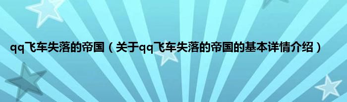 本文关于qq飞车失落的帝国的基本详情介绍就讲解完毕,希望对大家有所帮助。