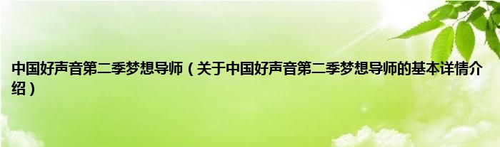 本文关于中国好声音第二季梦想导师的基本详情介绍就讲解完毕,希望对大家有所帮助。