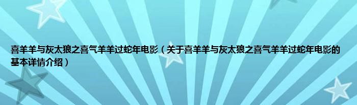 本文关于喜羊羊与灰太狼之喜气羊羊过蛇年电影的基本详情介绍就讲解完毕,希望对大家有所帮助。