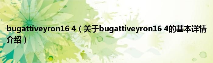 本文关于bugattiveyron16 4的基本详情介绍就讲解完毕,希望对大家有所帮助。
