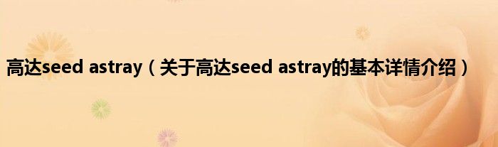 本文关于高达seed astray的基本详情介绍就讲解完毕,希望对大家有所帮助。