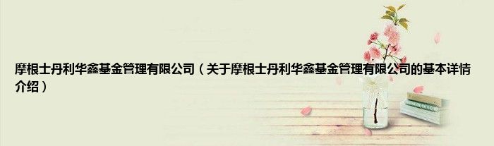 摩根士丹利华鑫基金管理有限公司(关于摩根士丹利华鑫基金管理有限公司的基本详情介绍)