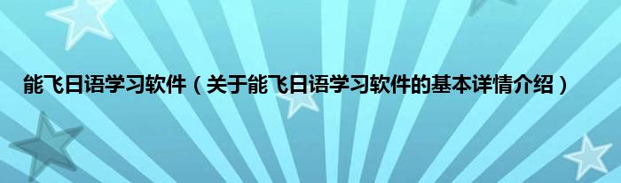 能飞日语学习软件(关于能飞日语学习软件的基本详情介绍)