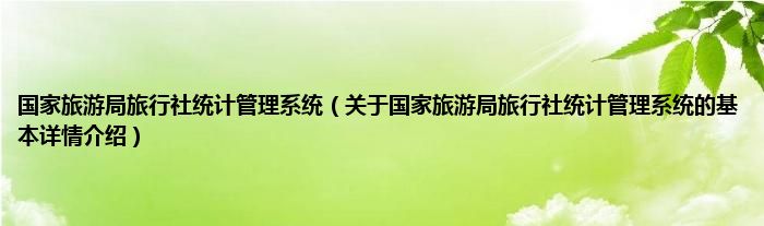 国家旅游局旅行社统计管理系统(关于国家旅游局旅行社统计管理系统的基本详情介绍)